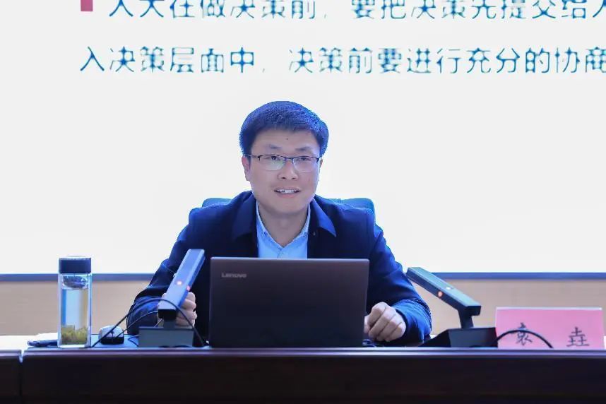 會上,袁垚圍繞習(xí)近平總書記在全國兩會上的重要講話精神、全國兩會基本情況、2023年政府工作報告要點、2023年兩會熱點重點內(nèi)容等方面內(nèi)容,并結(jié)合鹽城港的發(fā)展和工作實際,對全國兩會精神進行了深度解讀。