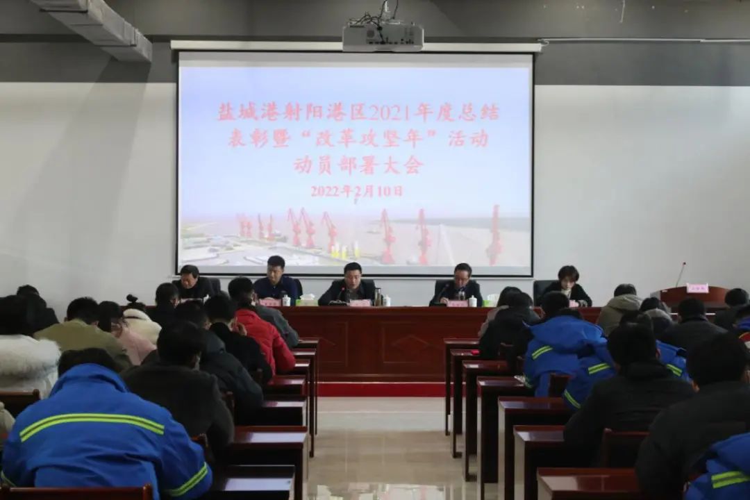 為貫徹落實(shí)鹽城港集團(tuán)“改革攻堅(jiān)年”活動(dòng)動(dòng)員大會(huì)精神,全面加快推進(jìn)年度工作目標(biāo)落實(shí),2月10日上午,射陽(yáng)港區(qū)召開落實(shí)集團(tuán)“改革攻堅(jiān)年”活動(dòng)動(dòng)員大會(huì)精神暨2022年工作部署會(huì)議,港區(qū)領(lǐng)導(dǎo)班子、機(jī)關(guān)、風(fēng)電裝備進(jìn)出口港公司全體員工出席會(huì)議。