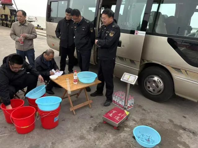 活動當(dāng)天,射陽港區(qū)3.5萬噸級碼頭現(xiàn)場秩序井然,射陽港區(qū)志愿者、農(nóng)業(yè)農(nóng)村局工作人員、技術(shù)專家及公證處人員共同參與放流。工作人員嚴(yán)格遵循操作規(guī)程,對蟹苗開展質(zhì)量檢驗、計數(shù)及裝運(yùn)工作。放流前,技術(shù)人員對苗種進(jìn)行嚴(yán)格檢驗檢疫,確保無病蟲害、無藥物殘留,為蟹苗健康成長提供基礎(chǔ)保障。當(dāng)鮮活的蟹苗被緩緩放入海中,“小家伙們”迅速游向深海,現(xiàn)場響起陣陣掌聲。