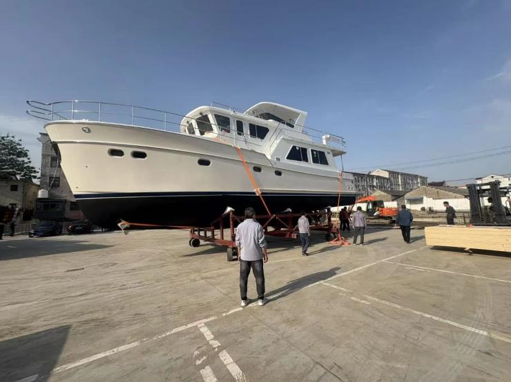 據悉,該游艇是瀚斯曼游艇公司今年生產的第5艘豪華游艇,長14.5米、寬5.2米、高7.5米,為三層結構,重量25噸。鑒于游艇體積龐大且附加值極高,公路運輸成本高、難度大,航運集團主動出擊,積極對接瀚斯曼游艇公司,詳細介紹鹽城港集團對美貨物的各項優惠措施,全方位了解游艇結構,精準剖析游艇的各項參數,反復溝通運輸難點堵點,逐條提出可行性解決辦法,最終憑借一套完善的“海河聯運”定制運輸方案,成功承攬了這次出口運輸任務。