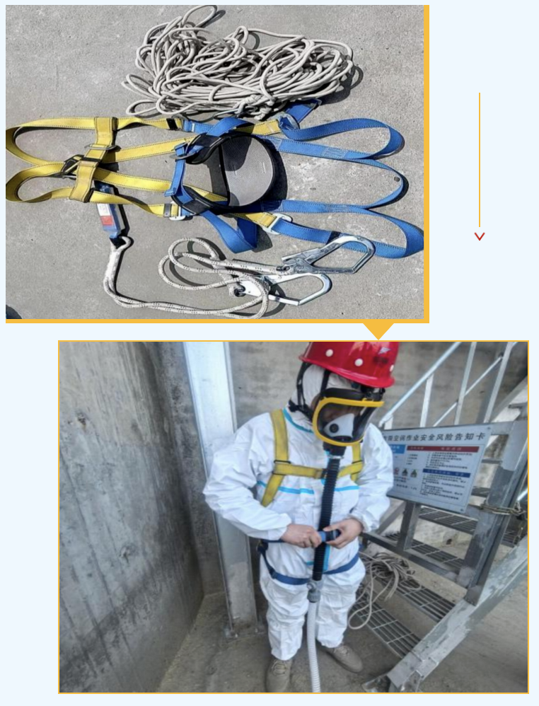 筒倉清倉作業環境復雜,粉塵與有害氣體如影隨形,作業期間,員工佩戴長管呼吸器有序清倉,倉外監護全程緊盯,雙重保障。長管呼吸器高效過濾有害物,穩定輸送氧氣,讓作業人員從容應對倉內挑戰,在高風險的倉儲作業中,為安全作業開辟出一條堅實可靠的新路徑。