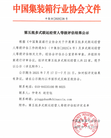 多式聯運經營人等級評估由中國集裝箱行業協會依據《多式聯運經營人基本要求及等級評估指標》團體標準組織開展,該評估從營收、資產規模、多式聯運運量等多個維度對申報的企業開展嚴格的審核,全面評估企業在跨運輸方式協同、全程供應鏈管理等領域的業內水平,是衡量多式聯運經營人服務水平和能力的權威依據,其等級評估指標體系也是多式聯運經營人不斷提升服務質量的引導規范。