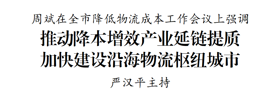 周斌在講話時(shí)深入分析了現(xiàn)代物流業(yè)發(fā)展的政策導(dǎo)向、當(dāng)前形勢(shì)和目標(biāo)任務(wù)。他指出,物流是實(shí)體經(jīng)濟(jì)的筋絡(luò),是支撐國(guó)民經(jīng)濟(jì)發(fā)展的先導(dǎo)性、戰(zhàn)略性、基礎(chǔ)性產(chǎn)業(yè)。全市上下要自覺從政治和全局高度認(rèn)識(shí),降低全社會(huì)物流成本是貫徹落實(shí)習(xí)近平總書記重要指示精神的實(shí)際行動(dòng),是著力破解高質(zhì)量發(fā)展新的“成長(zhǎng)煩惱”的現(xiàn)實(shí)需要,是更好滿足人民對(duì)美好生活向往的務(wù)實(shí)舉措,切實(shí)增強(qiáng)工作的主動(dòng)性和預(yù)見性,加快提升物流業(yè)規(guī)模、效率和效益,助力經(jīng)濟(jì)社會(huì)實(shí)現(xiàn)更高質(zhì)量發(fā)展。