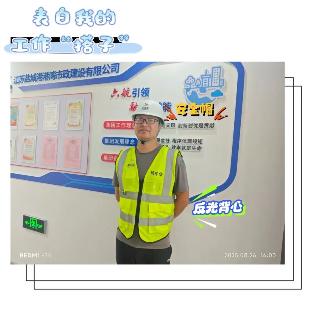 “每次踏入現(xiàn)場(chǎng),安全帽為我筑牢‘防護(hù)墻’,反光背心讓我在環(huán)境中‘醒目在線’,這對(duì)‘黃金搭子’,是守護(hù)安全的底氣!就像七夕里的雙向奔赴,我們互相守護(hù),在安全路上‘不離不棄’。”
