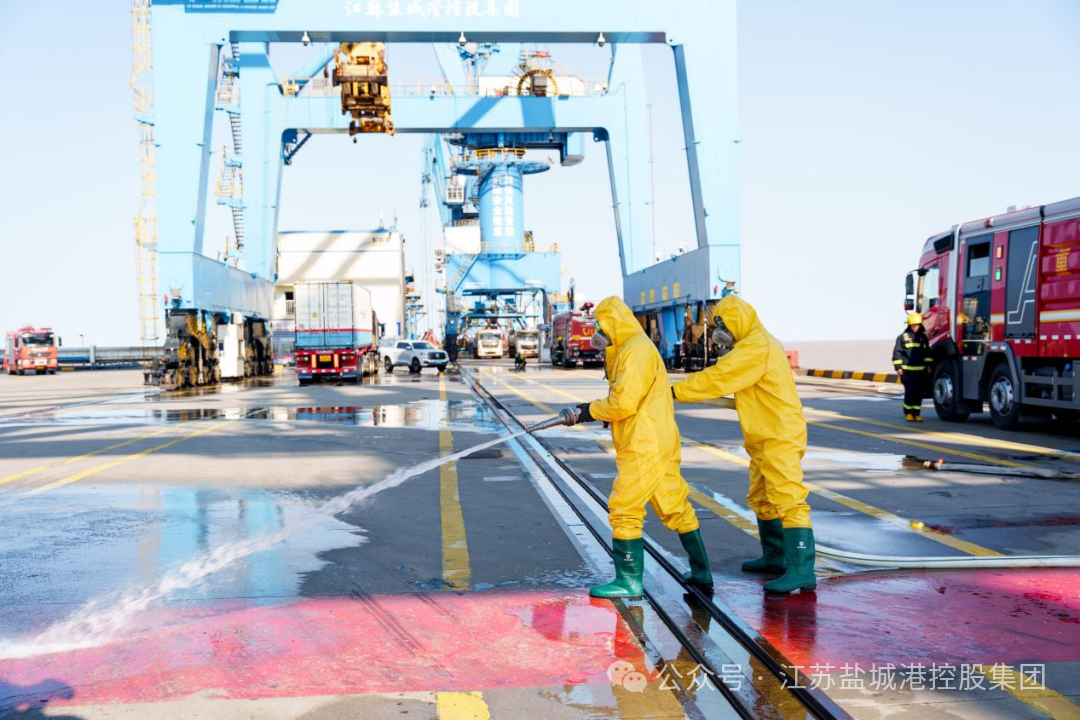 10月29日,2025年度鹽城市港口設施保安演習暨危險貨物事故應急演練在鹽城港大豐港區成功舉行。此次演練由鹽城市交通運輸局主辦,大豐港經濟開發區管委會、大豐區交通運輸局協辦,江蘇鹽城港控股集團有限公司承辦,大豐區公安局、大豐生態環境局、大豐海事處等11家單位協同參演,是一場多部門、多層級聯動的綜合性實戰演練,以實戰化場景檢驗港口應急處置能力,為保障港口安全生產與生命財產安全筑牢“防火墻”。