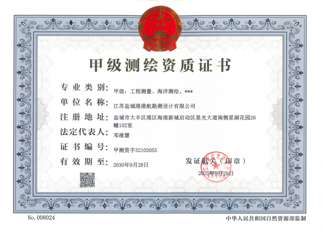 近日,江蘇省自然資源廳正式發(fā)布測(cè)繪資質(zhì)審批結(jié)果公告,港灣集團(tuán)勘測(cè)設(shè)計(jì)公司順利通過(guò)資質(zhì)審核,成功取得海洋測(cè)繪、工程測(cè)量兩個(gè)專業(yè)類別的甲級(jí)測(cè)繪資質(zhì),標(biāo)志著公司正式躋身測(cè)繪地理信息領(lǐng)域的“第一梯隊(duì)”,為服務(wù)區(qū)域經(jīng)濟(jì)社會(huì)發(fā)展提供了更為強(qiáng)勁的技術(shù)支撐。