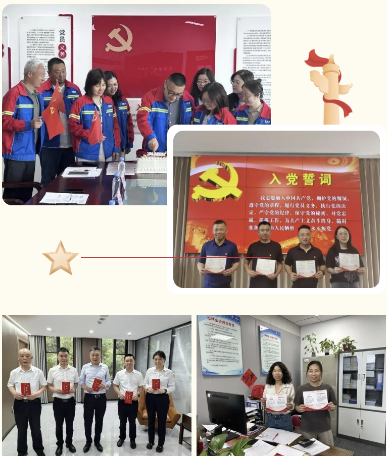時代見證奮進腳步,征程譜寫嶄新篇章。在中國共產(chǎn)黨成立 104周年之際,鹽城港集團各基層黨組織深入學習貫徹習近平新時代中國特色社會主義思想,以黨建領(lǐng)航為統(tǒng)領(lǐng),精心組織開展了“重溫誓詞守初心”“政治生日強黨性”“警示教育筑防線”“紅聯(lián)共建聚合力”“志愿服務(wù)暖民心”等系列主題活動,賡續(xù)紅色血脈,凝聚奮進力量,為集團高質(zhì)量發(fā)展注入強勁紅色動能。