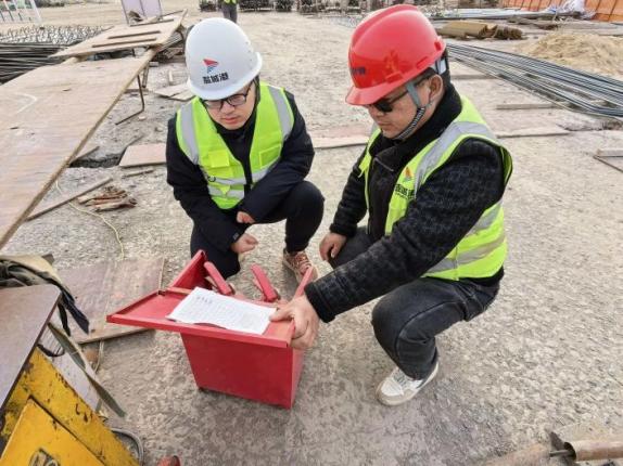 大豐港區內河北作業區項目現場,緊張有序的奮進景象同樣令人動容。當前項目正處于技術復雜、工序銜接緊密的攻堅階段,項目部提前部署、科學統籌,元旦期間保持 “管理力度不減、施工標準不降”,組織多支專業攻堅班組輪班作業。施工現場,工人們手持扎鉤穿梭于鋼筋網格間,將冰冷的鋼筋編織成堅實的 “安全長城”,全力推進地上防洪墻施工,以日計劃保周進度、以周調度促月完成,筑牢港區防汛第一道防線。“雖然不能回家過節有點遺憾,但看著工程一天一個樣,心里特別踏實?!?一位正在校核測量數據的技術員道出了眾多建設者的心聲。他們各司其職、默契配合,在機械運轉與焊花閃爍中沖刺關鍵節點,用扎實的工程進展為港區發展注入蓬勃活力。