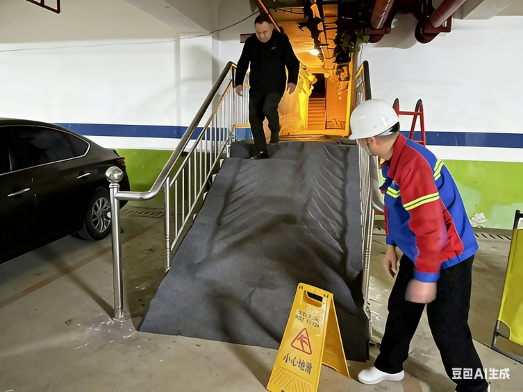 演練前期,專項動員培訓(xùn)會精準(zhǔn)劃分巡邏巡查、搶險維修、物資保障、現(xiàn)場協(xié)調(diào)四組網(wǎng)格化職責(zé),通過典型案例解析與實操技能演示,全方位夯實全員應(yīng)急處置功底。下午 3 時許,實戰(zhàn)演練正式啟動。“報告消控室!1 號地下車庫一處消防管凍裂,積水已漫至人行通道,存在結(jié)冰打滑風(fēng)險!” 巡邏人員在日常巡檢中敏銳發(fā)現(xiàn)險情,第一時間緊急上報,同步完成現(xiàn)場警戒隔離。消控室即刻啟動應(yīng)急響應(yīng)機制,快速核實險情位置、預(yù)判影響范圍,同步調(diào)度搶險維修組、物資保障組趕赴現(xiàn)場,并通知客服人員做好業(yè)主信息告知工作。