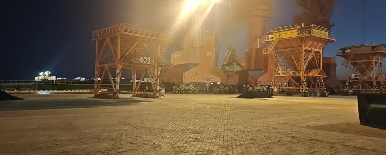船舶抵港前,現(xiàn)場(chǎng)調(diào)度人員根據(jù)實(shí)地實(shí)情統(tǒng)籌協(xié)調(diào),對(duì)泊位前沿、堆存場(chǎng)地等做到全流程銜接;生產(chǎn)運(yùn)營(yíng)負(fù)責(zé)人積極聯(lián)系海關(guān)、海事等口岸單位優(yōu)化通關(guān)流程,為貨物快速通關(guān)開(kāi)辟綠色通道;卸貨前,門(mén)機(jī)司機(jī)及時(shí)查驗(yàn)抓斗作業(yè)精準(zhǔn)度和作業(yè)穩(wěn)定性;針對(duì)石油焦易揚(yáng)塵等特點(diǎn),設(shè)置專用隔離區(qū)域,同步啟用噴淋降塵系統(tǒng),在卸船、轉(zhuǎn)運(yùn)、堆存各環(huán)節(jié)實(shí)施全程濕法作業(yè),全過(guò)程實(shí)現(xiàn)“零污染、零損耗、零事故”。