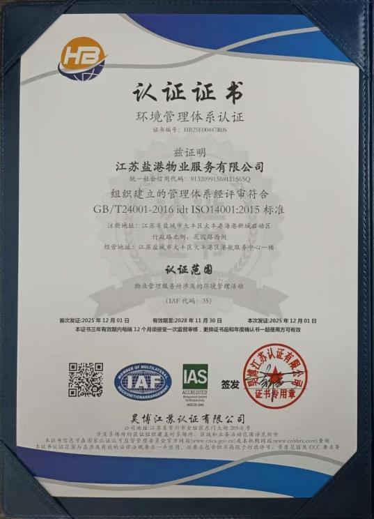 此次獲得的五項 ISO 管理體系認證,是對鹽港物業(yè)綜合實力的全面肯定,更構(gòu)建起公司高質(zhì)量發(fā)展的“五大基石”:在誠信管理方面,公司將進一步規(guī)范經(jīng)營行為,強化契約精神,以誠信贏取客戶與市場的信賴;在環(huán)境管理方面,將持續(xù)踐行綠色發(fā)展理念,優(yōu)化能源資源利用,減少環(huán)境影響,打造生態(tài)友好型物業(yè)服務(wù)場景;在職業(yè)健康與安全管理方面,將不斷完善安全防控體系,保障員工與服務(wù)對象的生命財產(chǎn)安全,營造安全穩(wěn)定的工作與生活環(huán)境;在質(zhì)量管理方面,將以ISO標準為標桿,細化服務(wù)流程,提升服務(wù)精準度與滿意度,為客戶提供更專業(yè)、更優(yōu)質(zhì)的服務(wù)體驗;在企業(yè)社會責(zé)任管理方面,將主動融入社會發(fā)展大局,在公益事業(yè)、社區(qū)共建等方面積極作為,彰顯企業(yè)擔(dān)當(dāng)。