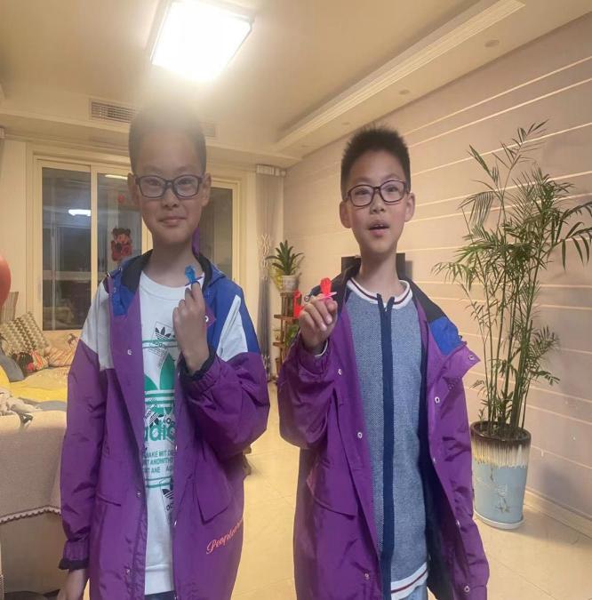 “那天,逍逍遙遙跟爸爸念叨,看中了紅色和藍色的大鉆石戒指糖,說特別漂亮,想買來送給媽媽。小家伙從爸爸那‘騙’到零花錢,興沖沖買回來在我面前晃了一圈,沒一會兒,上面的‘鉆石’就被他偷偷吃掉了。來自兒子的愛,簡單純粹,或許轉瞬即逝,卻足夠暖心。每當翻看這張照片,心里都滿是柔軟的歡喜?!?/span>